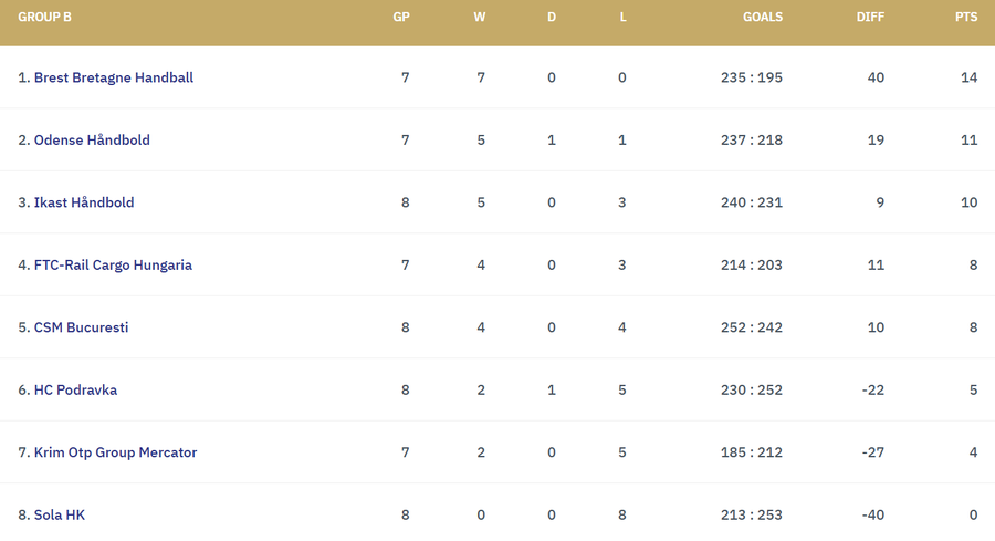 Sola, echipa lui Herrem, încă nu a obținut vreun punct în grupa B din Liga Campionilor. CSM București a câștigat 4 dintre cele 8 meciuri jucate.