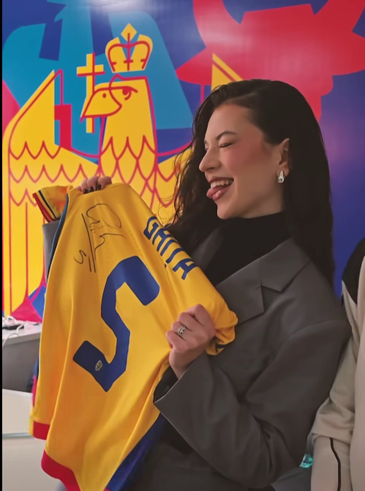 Artista i-a strălucit zâmbetul, iar jucătorul i-a răspuns cu un cadou simbolic, oferindu-i un tricou semnat.