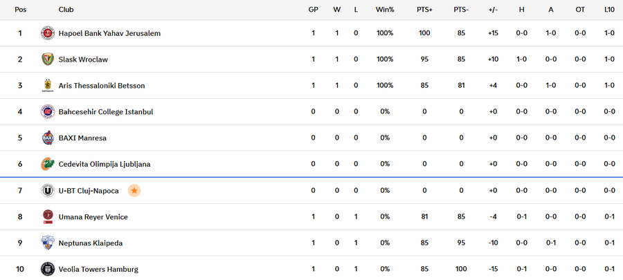 U-BT Cluj-Napoca va debuta miercuri, 1 octombrie, în cel de-al 4-lea sezon consecutiv în BKT EuroCup, a doua competiție continentală. La ora 19:00, în BTarena, campioana României va întâlni echipa Bahcesehir Istanbul, una dintre favoritele titlului, meciul din grupa A fiind transmis pe Prima Sport 3.