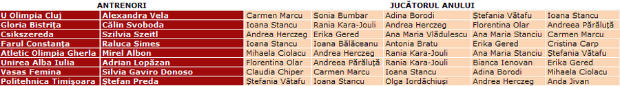 La această categorie au votat trei tipuri de alegători: căpitanii echipelor din Superliga feminină, antrenorii și redactorii Gazetei Sporturilor. Voturile au avut o pondere egală (33,3%) în rezultatul final.