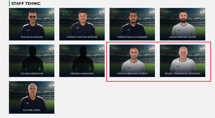 La publicarea acestui material, echipa avea un singur maseur activ în staff.