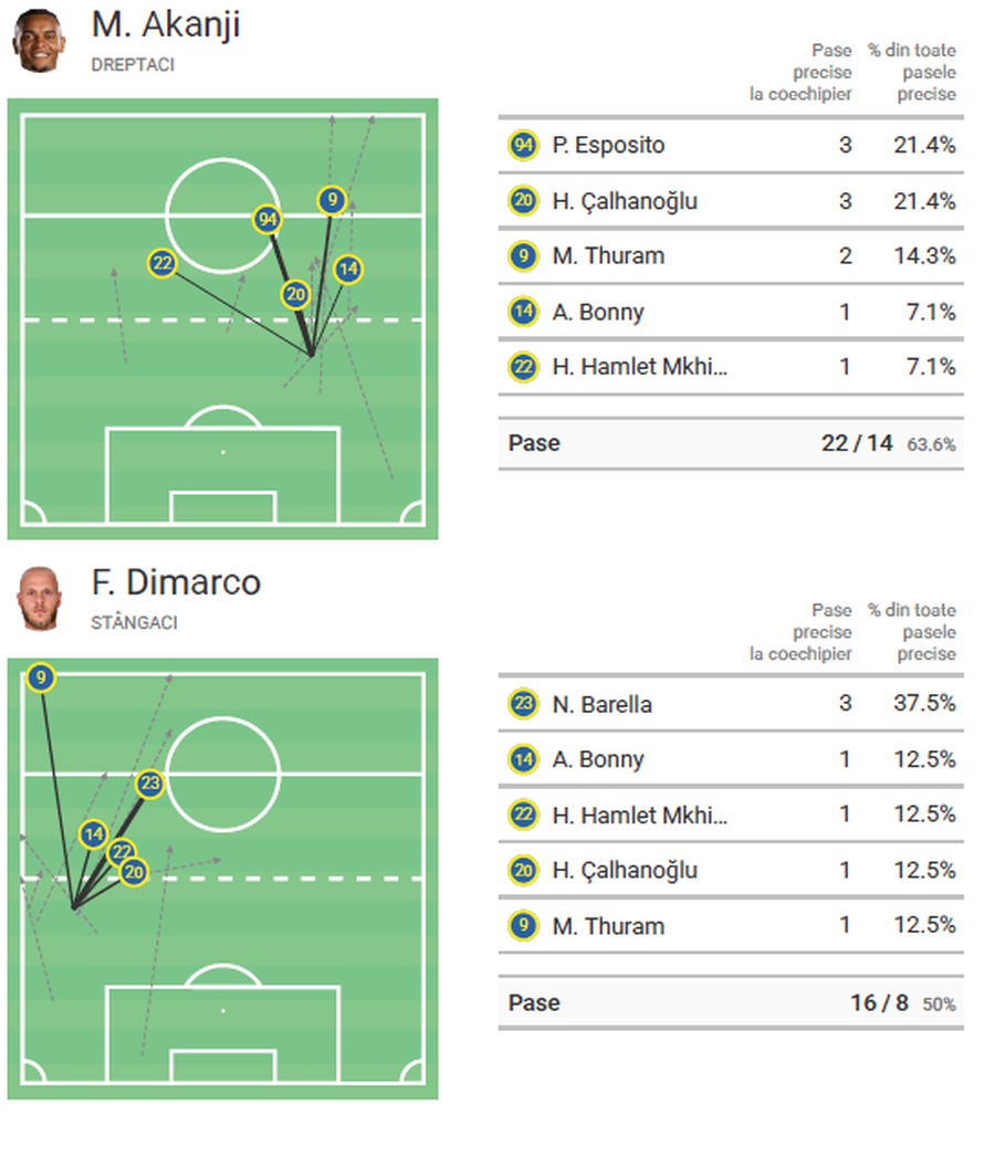 Dimarco, de exemplu, a trecut de la 0 goluri în ultimele 11 partide cu Inzaghi, la 2 goluri și 2 pase decisive în ultimele cinci meciuri sub Chivu, sugerând o reconfigurare a rolului său, îndreptate spre atac.