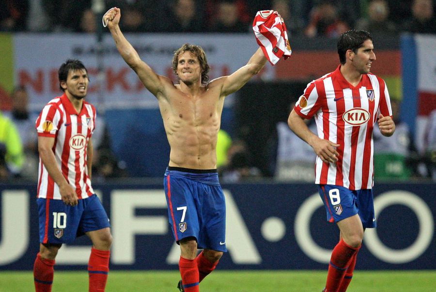 Sergio Aguero, Diego Forlan (în mijloc) și Raul Garcia