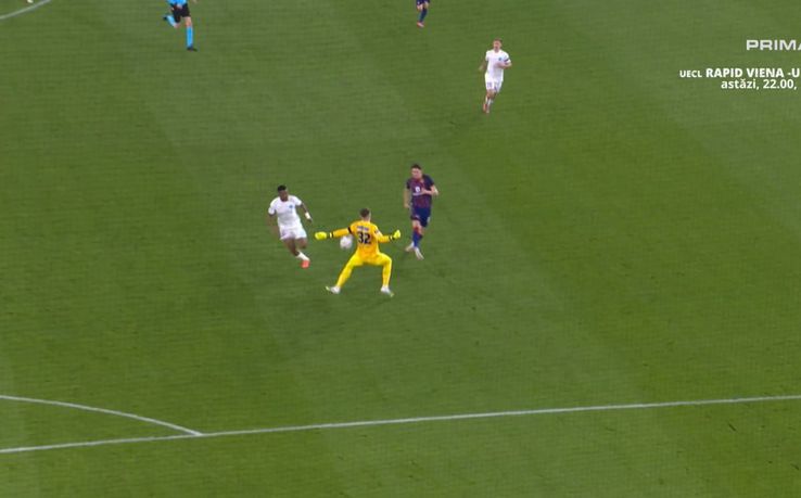 În minutul 12, Târnovanu a ieșit din poartă și a comis un henț în afara careului, blocând un șut al lui Borschinski. Portarul FCSB a fost eliminat, iar Basel a beneficiat de o lovitură liberă.