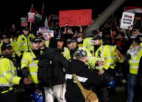 Protestatarii pro-Palestina și-au manifestat deschis opiniile prin afișarea de pancarte, postere și steaguri înainte de meci. Pe durata partidei, sute de susținători pro-Palestina s-au adunat în fața unei tribune, fluturând steaguri palestiniene și ascultând diverse discursuri. Vehicule ale poliției și ofițeri antiterorism au împiedicat mulțimea să se apropie de intrare.