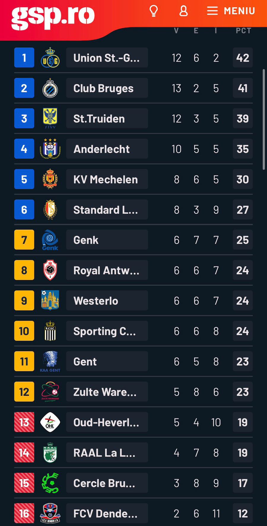 Anderlecht ocupa locul 4, cu 35 de puncte, la 7 puncte în spatele liderului Royale Union SG