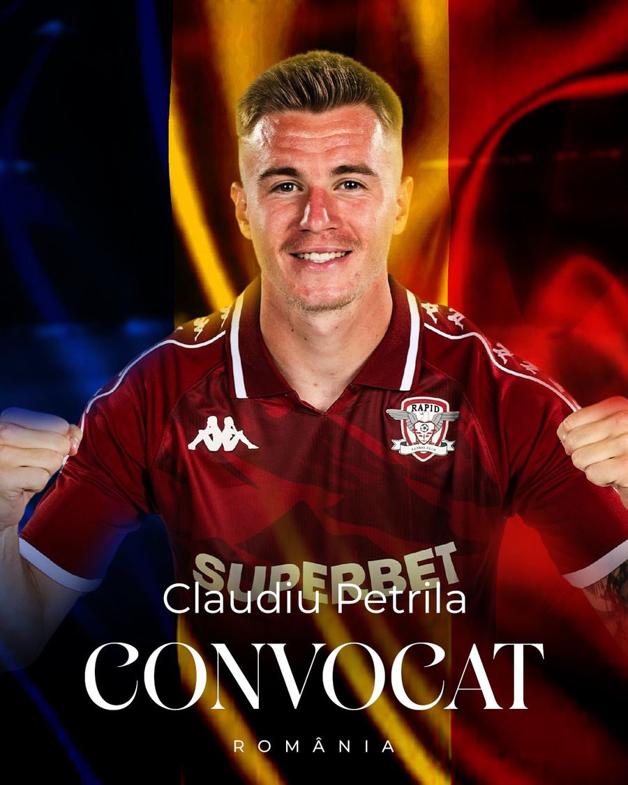 Astfel, Claudiu Petrila, care a împlinit 25 de ani, revine în lotul naționalei după ce a mai fost convocat în 2022. Atacantul echipei Rapid a acumulat 13 apariții în acest sezon din Superliga, reușind să marcheze două goluri și să ofere două pase decisive.