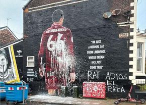 Muralul dedicat lui Trent Alexander-Arnold din Liverpool a fost atacat de suporteri. Internaționalul englez s-a întors în orașul său natal pentru un meci de gală din Liga Campionilor, ce se va desfășura pe Anfield.