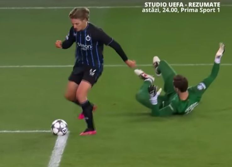 UEFA a comunicat în timp real explicația pentru anularea golului: „Jucătorul lui Brugge l-a împiedicat pe portar în timpul încercării de a juca mingea”.