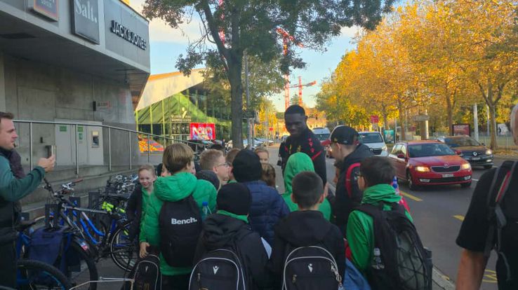 După antrenament, în apropiere, pe partea opusă a trecerii de pietoni din fața „St. Jakob-Park”, se aflau mai multe grupuri de copii și juniori de la academia Forza Wroclaw, veniți în Basel pentru un turneu.