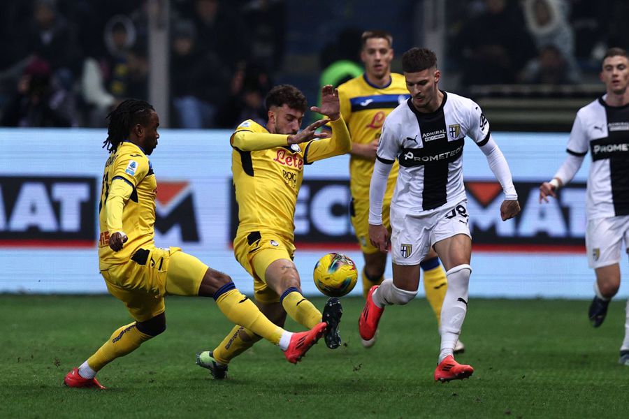 Dennis Man, în duel cu Ademola Lookman în meciul Parma – Atalanta din noiembrie trecut.