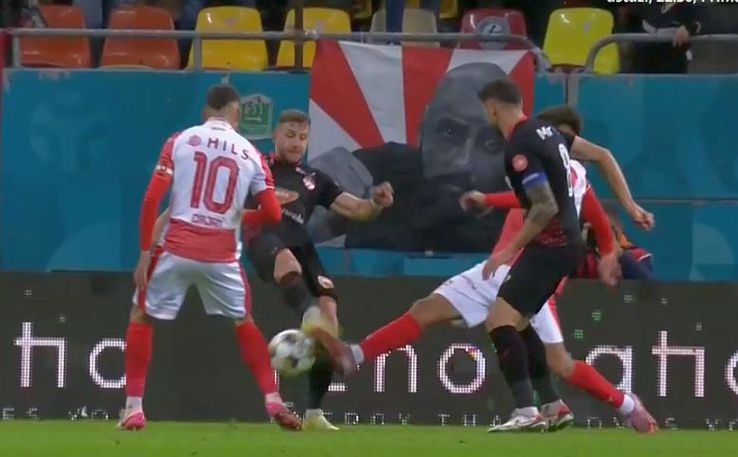 Extrema dinamovistă a fost prima la minge, a atins-o cu vârful, iar Bloj, încercând să degajeze, l-a lovit pe Musi în talpă.